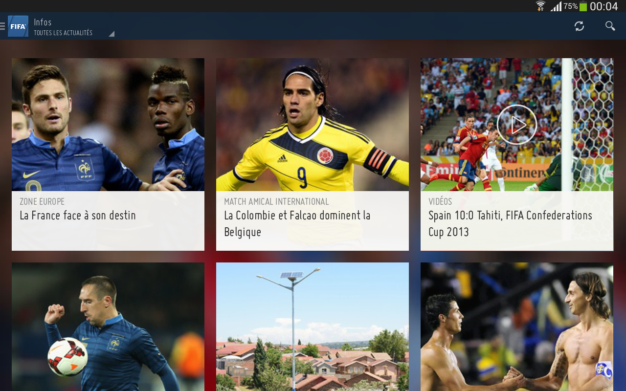 قام الاتحاد الدولي لكرة القدم فيفا باطلاق تطبيقه الرسمي الخاص بنظام التشغيل اندرويد اثناء القرعة النهائية الخاصة بكاس العالم المقام في البرازيل في السنة القادمة
